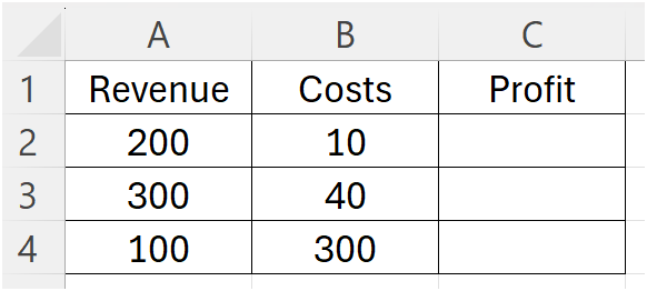 New way: Leverage AI, you would ask it "Calculate Profit by subtracting Cost from Revenue.”