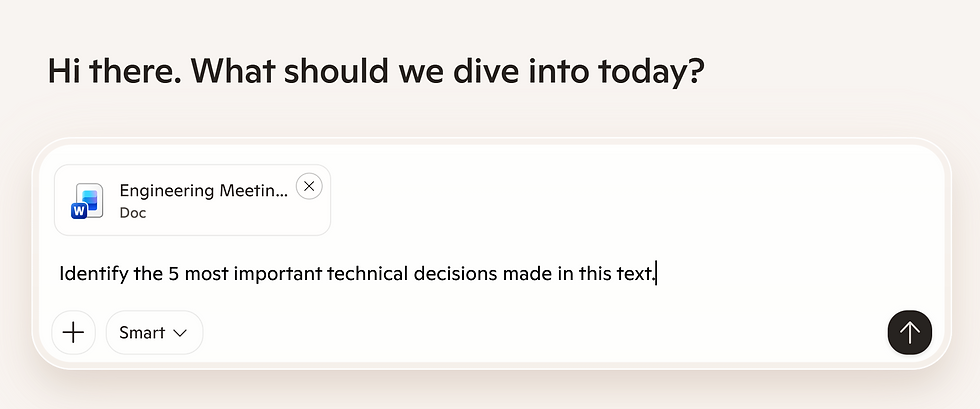 Task 1: Paste the notes and ask: "Identify the 5 most important technical decisions made in this text."