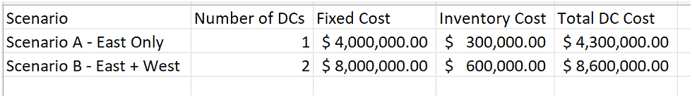 Another critical component in evaluating a DC network is understanding fixed operating expenses and inventory carrying costs.